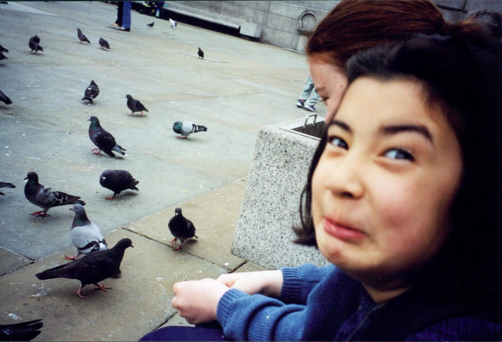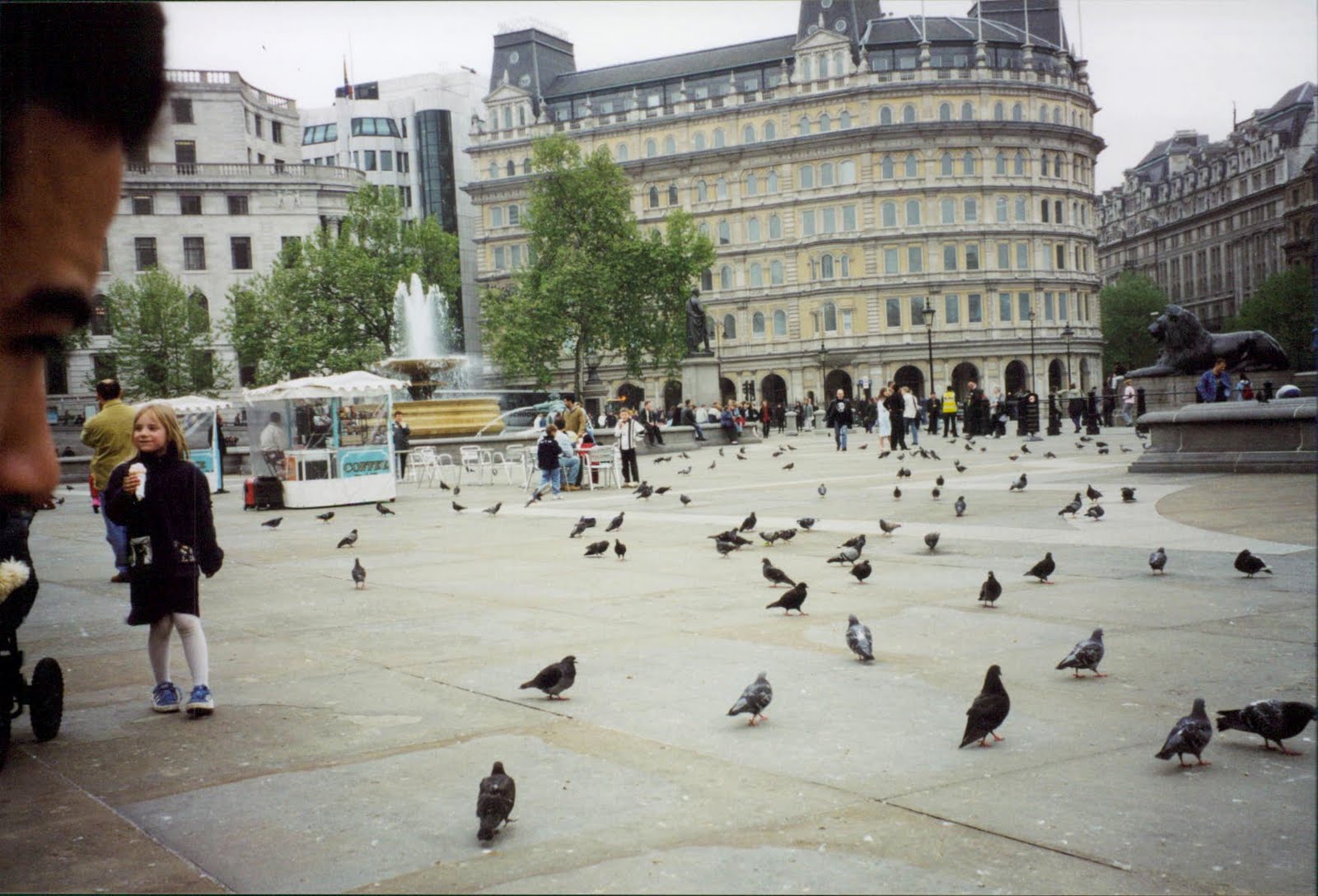 In Trafalgar Square, Sidney got in more pigeon chasing.