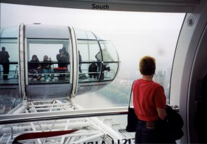 Then they crossed the Thames to go to the London Eye and took a spin on the Eye.