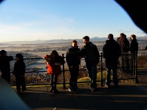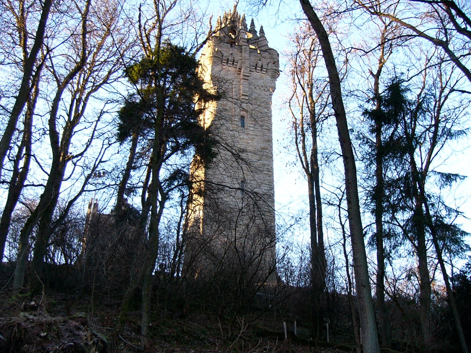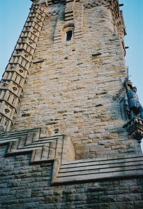 We then caught a taxi to take us to the Wallace Monument. The driver proudly told us that Stirling Castle has never been taken in battle — surrendered, yes, but never taken in a fight. We were dropped at the parking lot for the Wallace Monument. After shuddering at the sight of the statue of Mel Gibson as William Wallace, we walked up hill to the base of the monument.