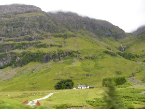 We drove onto Ft. William where it was raining even harder. We had a quick lunch at the West Highland Centre. We stopped briefly at Glencoe Visitors Centre.