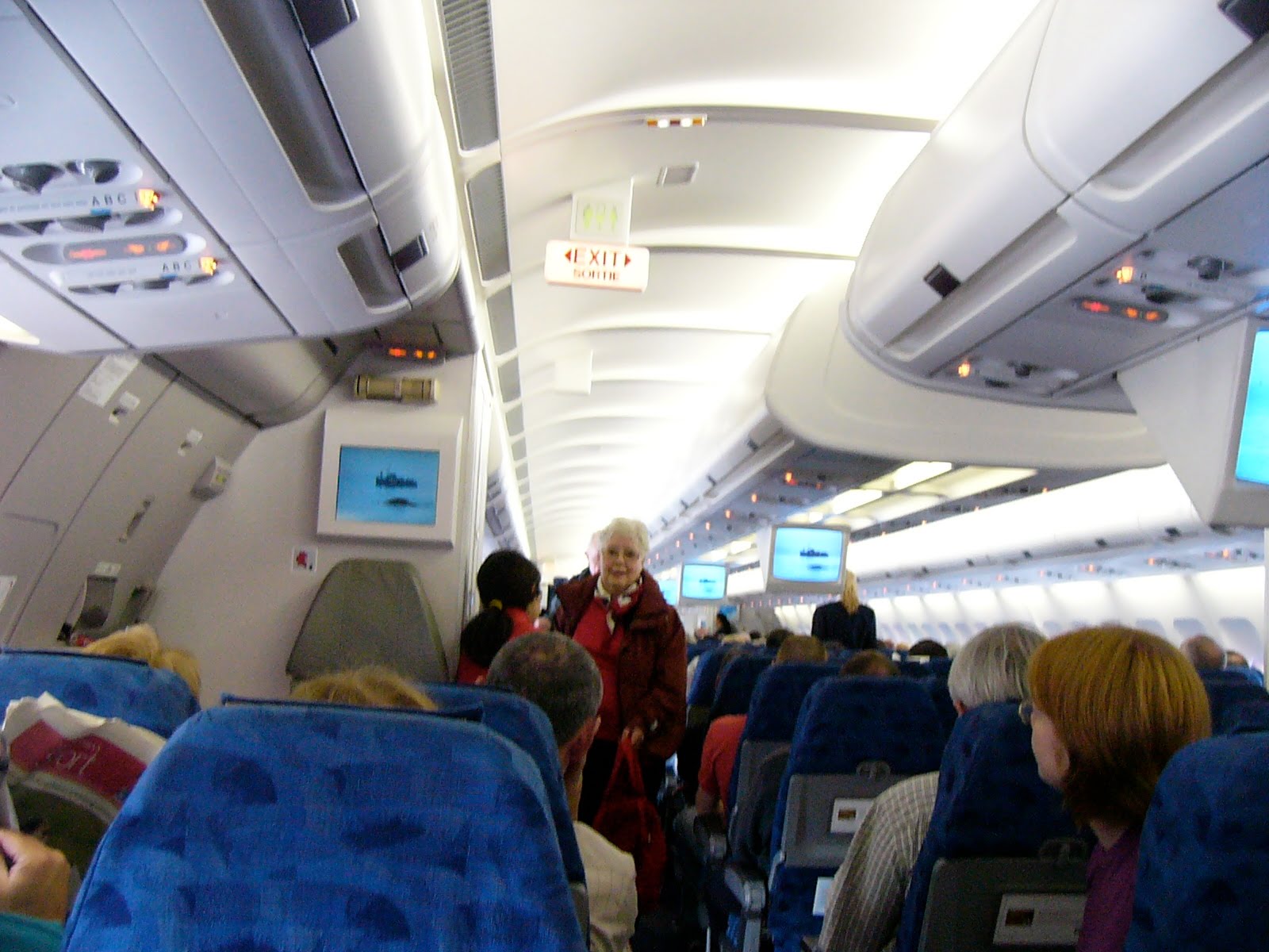 Scott bought scotch while the girls shopped for candy. We couldn’t see Bob and Nancy so assumed they went to the plane. We got seated on the plane but still no B & N. Scott wanted to look for them but told he was not allowed off the plane. He asked for someone to go look for them and waited by the door of the plane. They eventually showed up with someone from the airport carrying their bags.