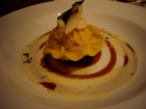 We started with scallops, frogs legs, seafood ravioli and tuna and swordfish carpaccio.