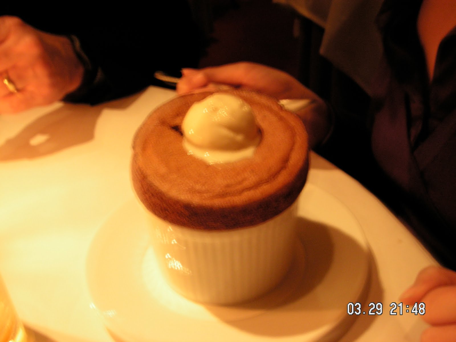 We started with champagne, single malt and fruit juices, and were brougth “canneloni” of smoked salmon and avocado, crispy potato slices with cream cheese and garlic in the middle. Those amuses were followed by pumpkin soup with truffle garlic butter on a cheese pastry spoon to be mixed into the soup. After more than a day of little to eat, both Scott and I thought this was the best thing we had ever tasted.