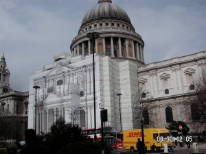 We went into St. Paul’s. Looking around the cathedral was interesting but then we climbed the stairs to the Whispering Gallery. The girls liked it. I didn’t. Too high.