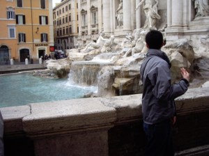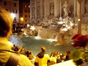 Robin and Scott claim their “man compass” can get us back to the hotel without my referring to my written directions. Surprisingly, it does and so we get a chance to see the Trevi Fountain at night. There’s a lot more people around it and even a couple getting married in front of the fountain.