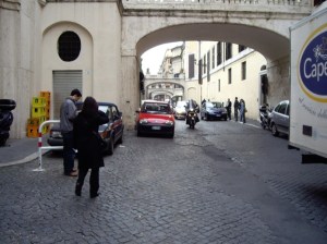 At this place, their wine list is very good. We had a bottle of Brunello di Montalcino and were brought little snacks called, I think, stuzzichetti. (I can’t remember and can’t find it in my dictionary). Tiny sandwiches, olives, pieces of frittata, and crostini. Petulia joins us and we have another bottle of wine and get a whole new array of snacks, crostini with different toppings, different fillings in the sandwiches, fried balls of ceci and I can’t recall what else, but all very tasty. With Petulia and Olivia, we have an opportunity to chat about life in Rome, Italy generally, universities and raising children, as well as how to get the most out of our visit to Rome.
