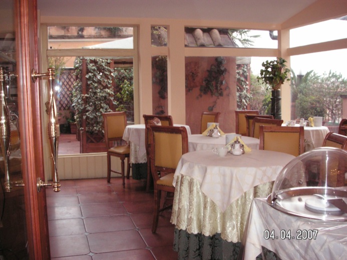 Breakfast at the hotel is included. The breakfast room and terrace is just outside our rooms. It has a fairly substantial buffet of cereals, breads, eggs, fruits, yoghurt, cheeses, cakes, juices and coffee, even espresso if you ask. Because it is close to our room, we can bring cups of coffee into our room before were ready to go out and eat.
