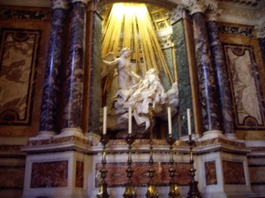 Bernini’s Ecstasy of St Theresa, a piece of theatre as much as it is a piece of sculpture. Check out our photo.