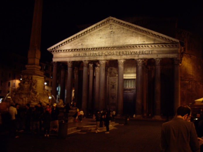 We leave Trattoria and go to look at the Pantheon at night. The Piazza in front is a buzz with people sitting outside eating or sightseeing. Scott decides to take a different route away from the Pantheon and we see a sign indicating we are coming to a bridge to cross the Tiber river. This is obviously the wrong way back to the hotel. We have to examine our maps, turn 90 degrees and head in the right direction. So much for the man compass!