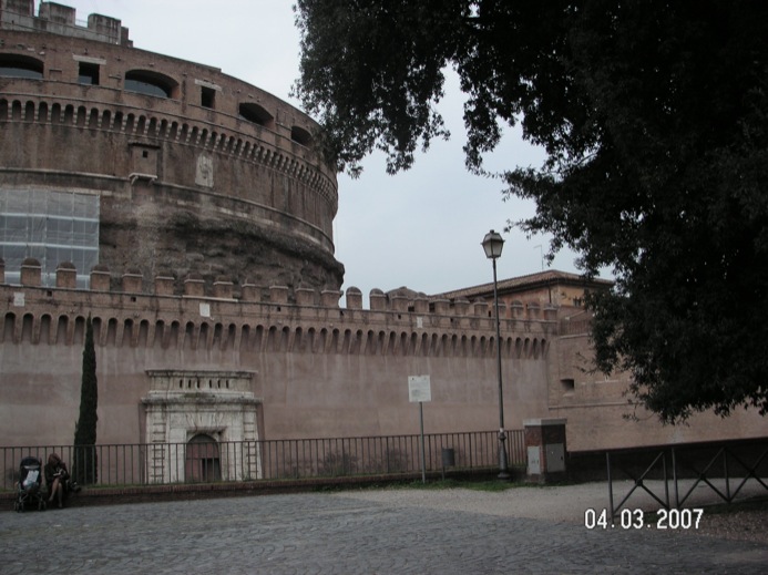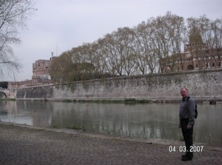 We walk from there towards San Pietro. I suddenly remember I forgot the 2 pairs of binoculars I brought to look at the Sistine Chapel ceiling. Aaargh! They weight a lot and now were carried for no good reason at all. I kick myself all along the lower walk by the river.We cross on the Ponte Sant’Angelo which is lined with statuary designed by Bernini and with some controversy about which, if any, were carved by him. I check them out as we walk along and try to guess if any were done by his hand.