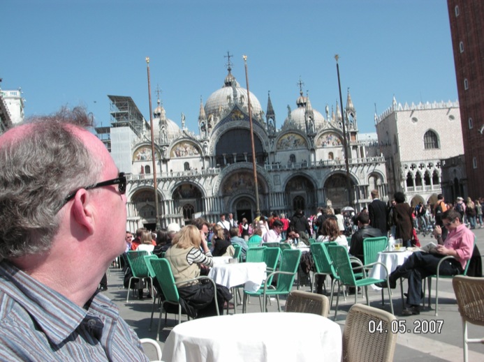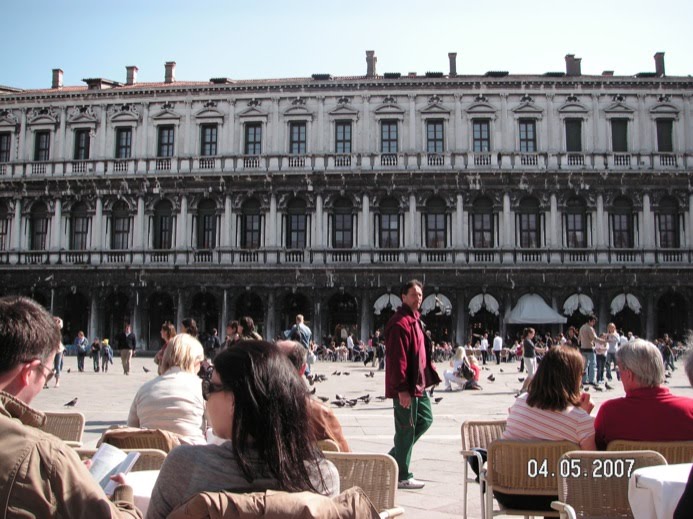 We head to Piazzetta di San Marco. It’s about 2:30 in the afternoon and the place is very crowded with tourists. We could go into Basilica San Marco, the Palazzo Ducale, or Museo Correr, but laziness has set in. Instead, we sit at one of the cafes farther away from San Marco because it is less crowded and doesn’t have a group playing old Dean Martin and Frank Sinatra tunes. (Is that what Italians think American tourists expect in Italy?) We decide to enjoy the sun, some wine and some people watching.