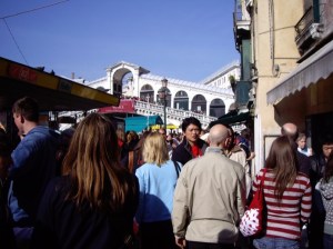 We left San Marco, I have no idea what route we took, but eventually found ourselves looking at the Rialto Bridge. That I can find on my map.
