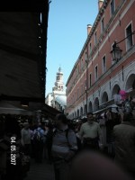 We order a bottle of wine from the Veneto. It comes with olives on ice which makes it refreshing. We haven’t had lunch so we each order a panini. My cheese, tomato and lettuce is exactly that, no dressing of any sort and the bun is plain, entirely bereft of butter or any spread. But the bun is toasted and the cheese and tomato have flavour so it is not as dreary as it might be. Scott’s salumi panini is just bun and slices of salumi. Again, a lesson not to expect much in the way of good food near a major tourist attraction. This place also had one of the weirdest toilets. It was only 8 – 10 inches high and no seat. And this was for donne, women. I had been warned about lack of toilet paper but no one told me I’d have to practice my deep knee bends.