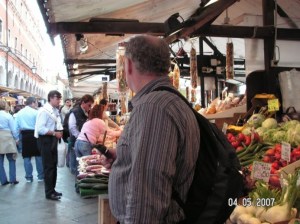 We are not sure we’re going in the right direction back to our hotel but we find a tabaccheria to buy a long distance calling card and an enoteca, Vini da Pinto, which has a good collection of wines. We have to say in Italian that we want to buy bottles of wine. (Vorrei comprare due bottelgie di vino rosso, per favore.) We’ve got that sentence down pat by this point. We buy 2 Brunello (as our red count is low) and manage to get back to the hotel.