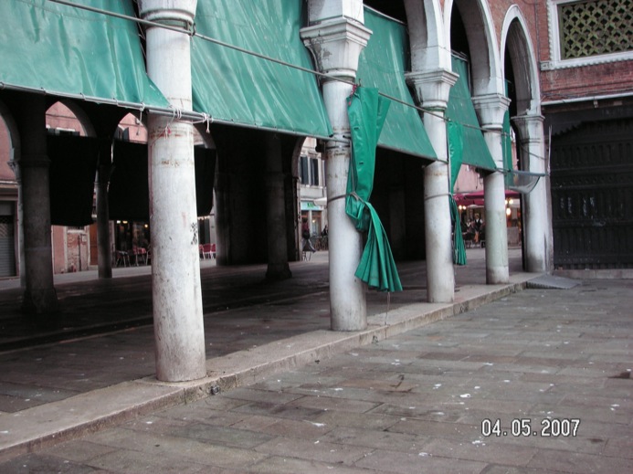 We are window shopping in the arcaded area of the square when the gun goes off and the pigeons all fly up, swirl around and settle back. Someone told me this was to scare them off, but it obviously doesn’t work.