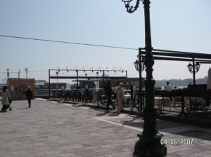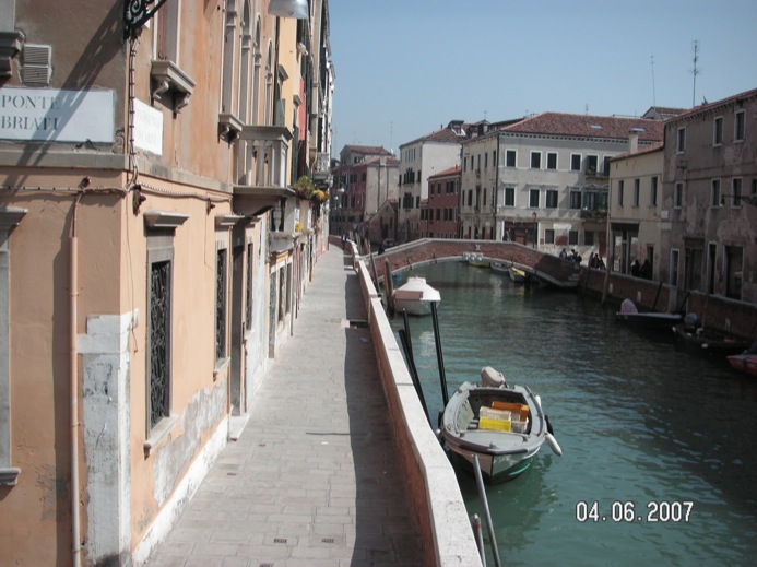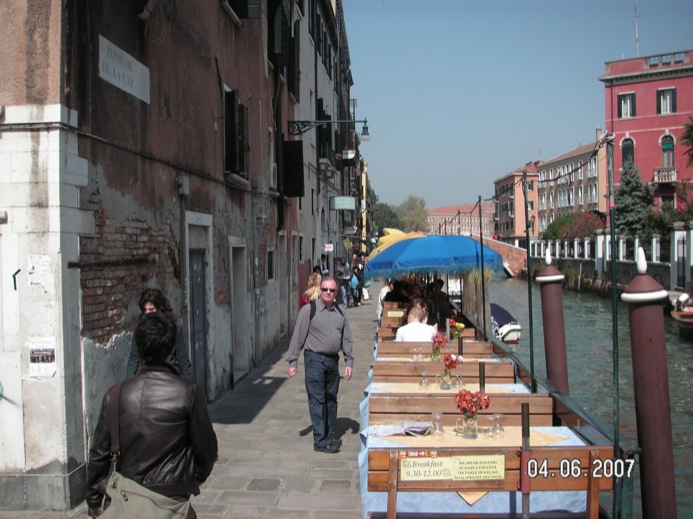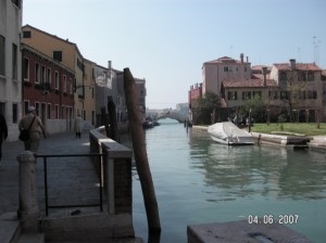 After the Accademia, we wander along a canal and find ourselves looking at Canale della Giudecca. We decide to look for a place in the sun for a bite of lunch. We end up walking to an area which looks like its for loading cargo and not particularly pleasant for lunch so we keep walking. We realize after a while that we’re lost, again, and the street names are not on the map.