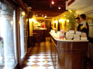 For dinner, we had reservations at Vini da Gigio [Cannaregio 3628 a Strada Nova, Venezia, tel: 39 041 5285140] The first challenge was finding this place. The address is Strada Nova, the very tourist filled street which runs parallel to the Grand Canal leading away from the train station. We have learned by this point that the numbering system is not the Napoleonic one of odd numbers one side, even the other, nor are they always in consecutive order but we walked up and down the street three times without success. At that point, we figure we needed to start looking down side streets and indeed, that was how we found the restaurant. I guess because it faces Strada Nova, it has that as an address instead of the name of the side street where the other doors face the canal. Who knows?