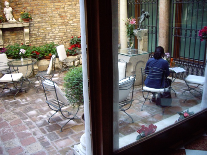 I need il bagno and just duck into a restaurant with sidewalk tables hoping no one will notice I wasn’t sitting at one of the tables. We get a gelato and continue walking until we are back to the Rialto bridge.We sit in the courtyard, have a beer and examine our maps to figure out where we have been. One of the owners admits that he, too, still gets lost in Venice.