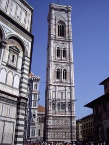 The Campanile de Giotto, the bell tower, also has a long queue. We can see people at the very top.