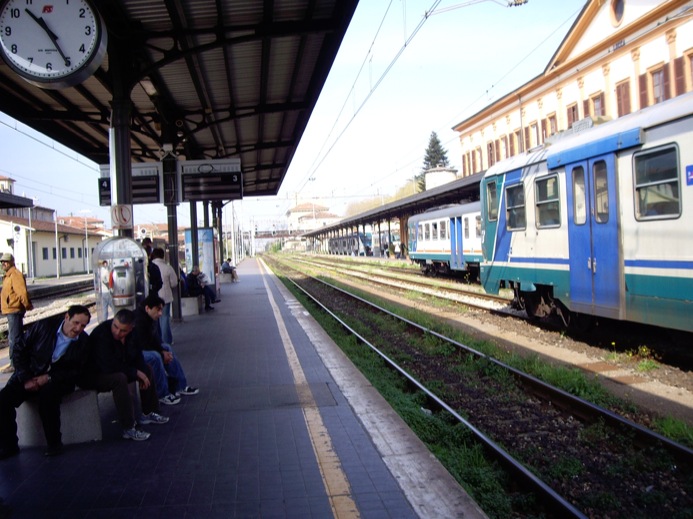 The train is scheduled to leave at 10:31 and arrive at 12:30. We have to change trains in Viareggio. At Viareggio, I go to see if my raincoat, which I left on the train yesterday, was found as Viareggio was the last stop for that train. The woman at the ticket window doesn’t speak English. I have to try my Italian, “Ho perso mio cappotto in treno ieri”. She asks something and I figure out eventually that I need to tell her the train was the one from Firenze at diciotto ore. She shouts to someone in the back about cappotto and answers “Niente”, nothing. So no raincoat for me for the rest of the trip.