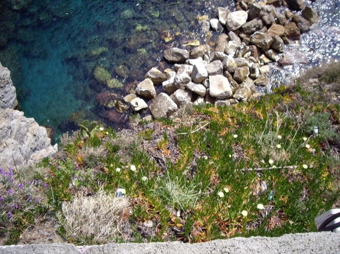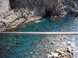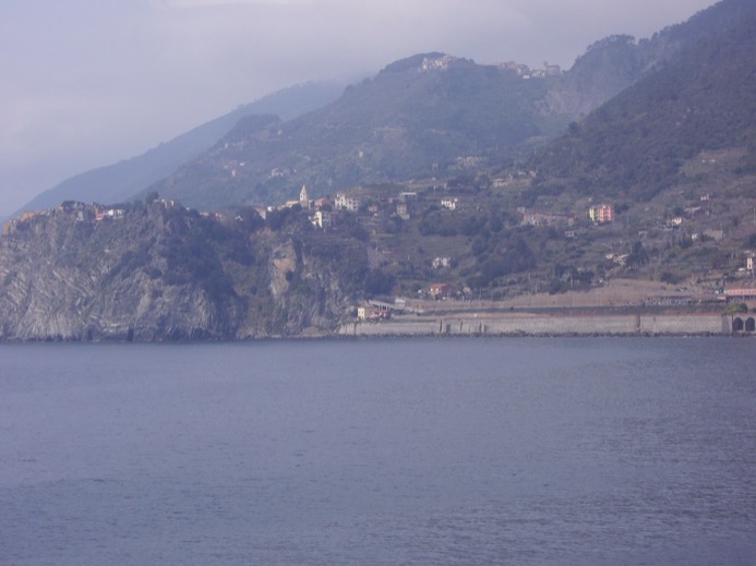 We arrive in Riomaggiore at 12:30 as scheduled. We buy tickets for the Cinque Terre path and head to the closest restaurant with a view of the sea. I don’t even know the name of the place we had lunch (no receipt because we had to pay cash) but the salads we ordered were quite good despite the fact that it is clearly a place for tourists. The Chianti, of course, was perfect as we looked over the water and gazed up at the houses on the mountainside.