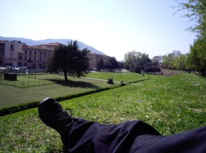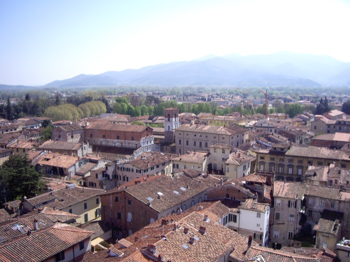 We still need some wine! We try the wine shop on Via San Andrea but it too is closed for lunch. I head back to the apartment while Scott goes up to the top of Torre Guinigi, where he takes some great photos of Lucca from above.