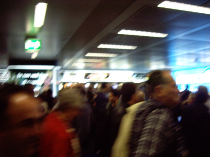 After a gate change, which was infrequently announced, we eventually get on the Lufthansa flight to Frankfurt with people speaking Italian, French, German, Japanese and a lot of languages I don’t recognize. I see this is also a flight for some Polish airline. We hear a lot of southern American drawls on this flight, also.
