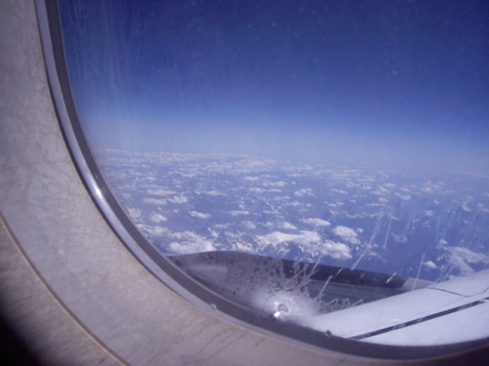 During the flight, which leaves around 10:30 am, Scott accepts a glass of red wine. It is the purplest thing I’ve ever seen. Me, I’m too old to drink bad wine.