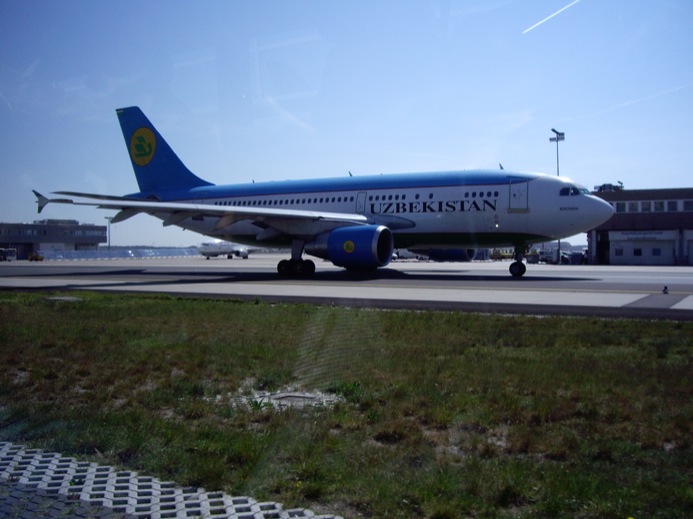 Frankfurt airport is crazy busy. Scott keeps looking at planes passing near ours as we get close to Frankfurt. We get off the plane on the tarmac and onto a bus for a ride to Terminal 1 where we catch our flight to Calgary. We can see a plane driving straight for the bus when we cross one runway. Scott takes a photo of what looked like it could have been a near collision.