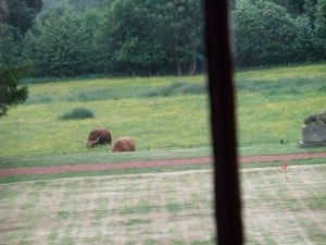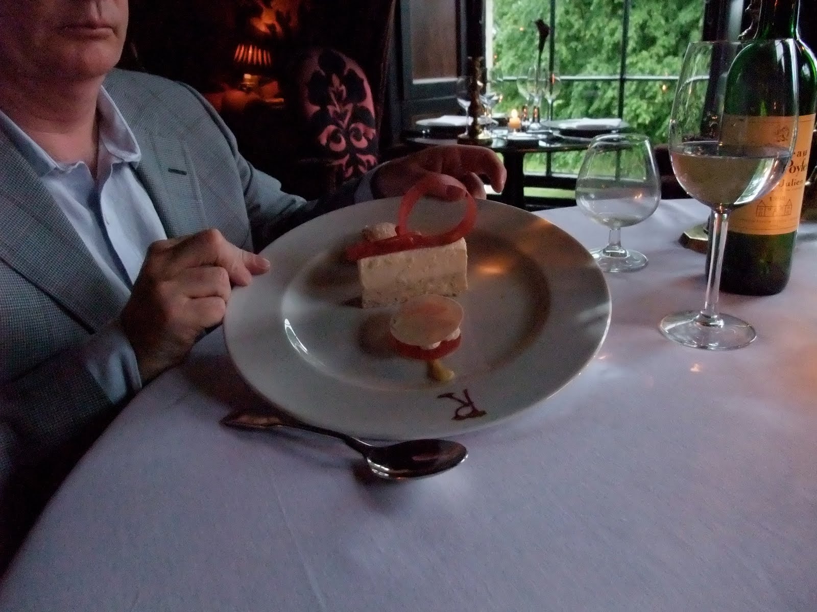Dinner was a Rhubarb, which is set in a very parklike bit of land south of Edinburgh’s city centre. Our cab dropped us at the front door, where we could see Highland cows grazing, and we were led to a lounge which was done in the style of the hunting lodge which the building was originally intended to be. The antler furniture was a bit much.