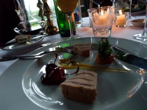 As we enjoyed our pre-dinner drinks, we were brought a menu so we could order before moving to the dining room which was almost over the top opulent. We could see a peacock from the dining room window.