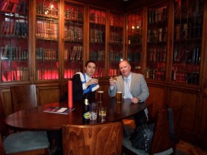 The speaker was short so we finished by 4 and went to the Library Bar across the quad for a celebratory drink.