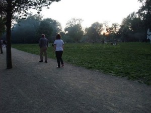 After all that food, we decided to walk in Vondel Park, a large urban park rather like Central Park in NYC. This evening it was full of young people waiting for a concert to start, part of a series of concerts going on around Amsterdam this weekend. Others were there picnicking, playing with balls or just socializing. And a considerable smell of weed was noticed. There seemed to be people everywhere.