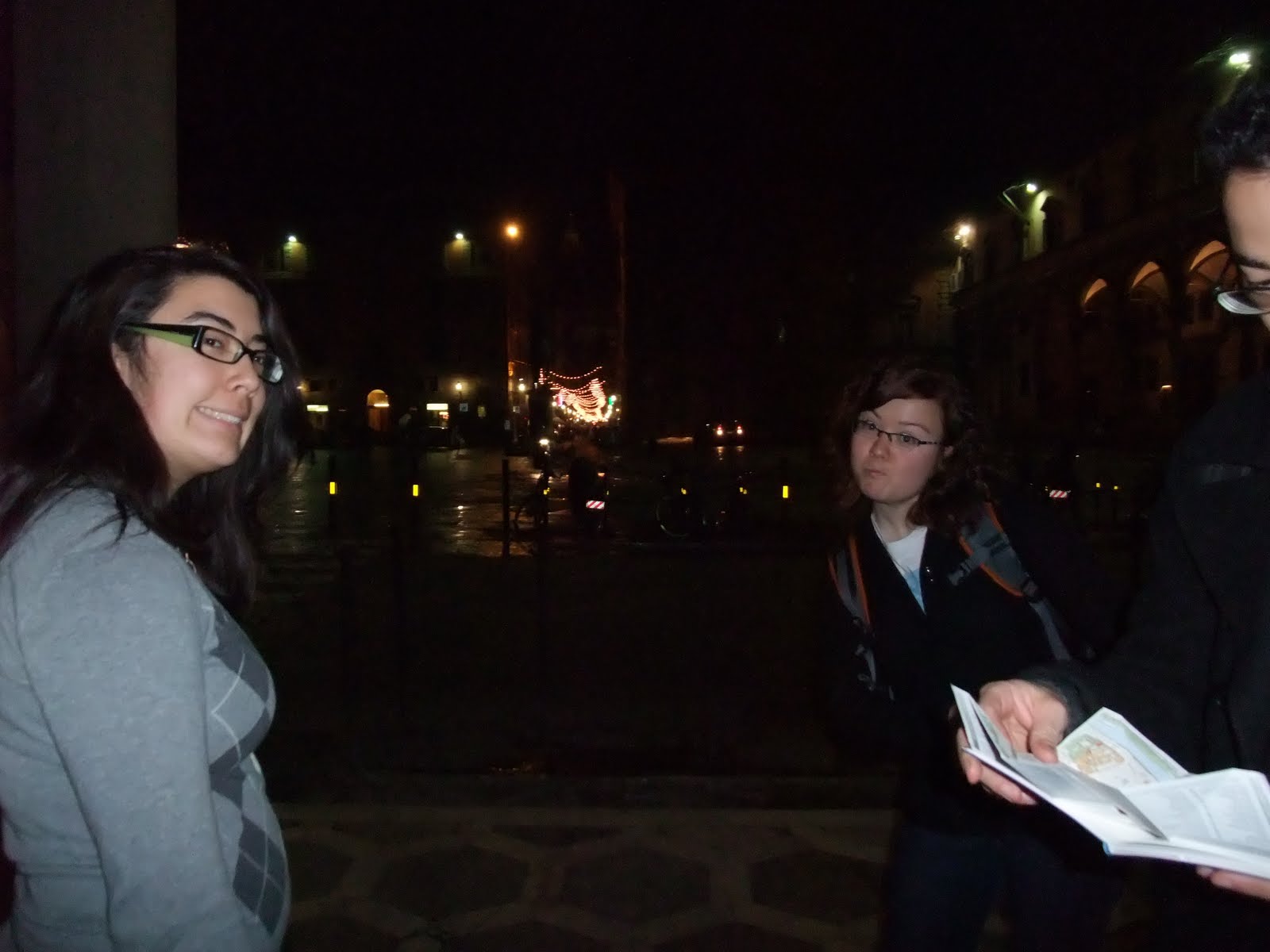 We met up with Allie last night about 6:30 p.m. She had sent a text saying she was on the train from Rome. We decided to head out to look for groceries and vino. We turn left from the front door, when we should have turned right, and were standing at the corner trying to figure out where we were, when Sidney screamed because she saw Allie.