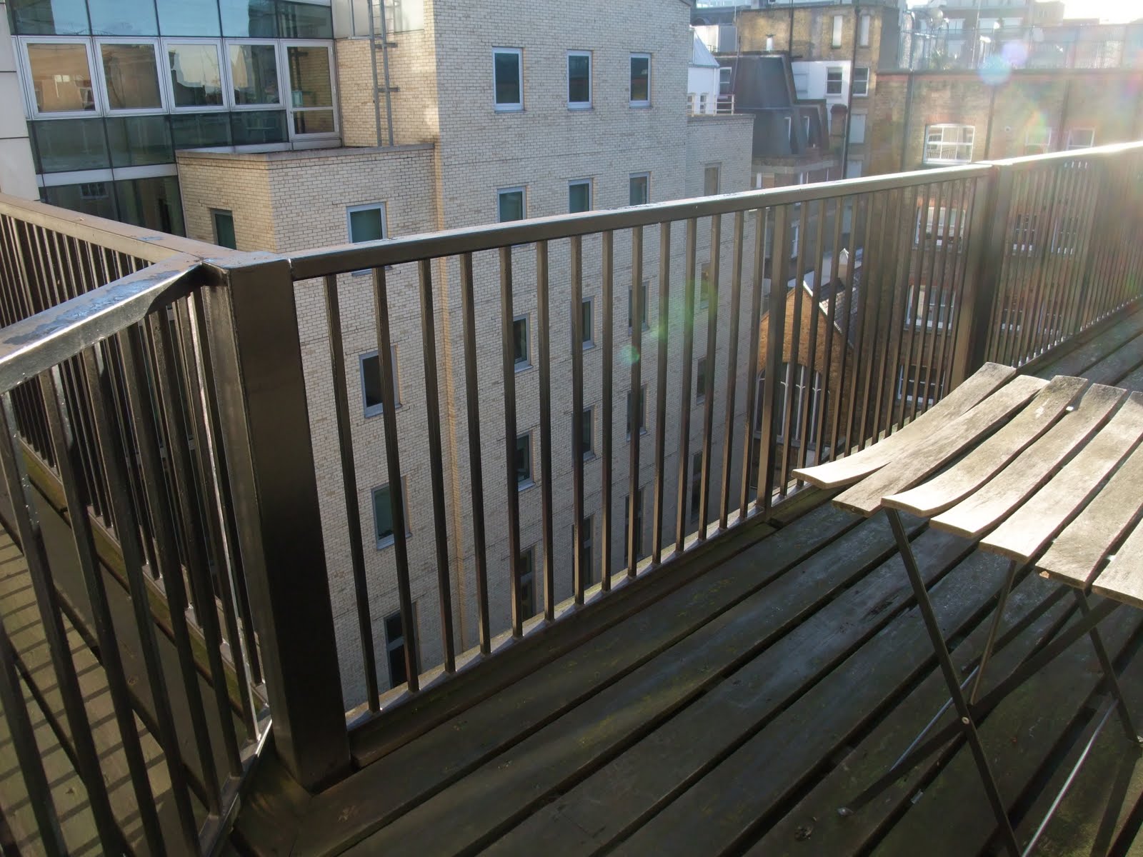 Hurray! The sun is shining. We have seen a lot of rain lately so sunshine is especially welcome. The flat we’re in is on the 4th floor (British counting), with a lift this time, and has a terrace but it’s small with no view other than the back of other buildings.