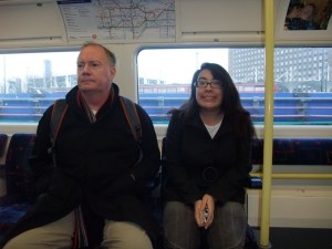 Scott and Sidney on the Jubilee line going from Stratford station to Canning Town station.