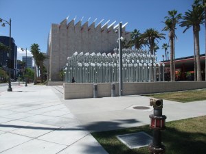 A view of the Broad museum and the new not yet opened exhibition space from the back side of the grounds.We got dropped off on the Third Street Promenade, but it’s mostly chain stores, restaurants and movie theatres, so we didn’t find any good souvenirs to buy. It was a mostly disappointing shopping day.