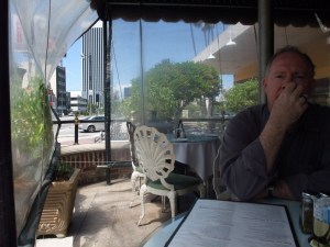 We caught a taxi to the Los Angeles County Museum of Art and walked along Wilshire Boulevard looking for somewhere for a meal. We were having a glass of wine before noon for the third day in a row. Hooray for holidays!