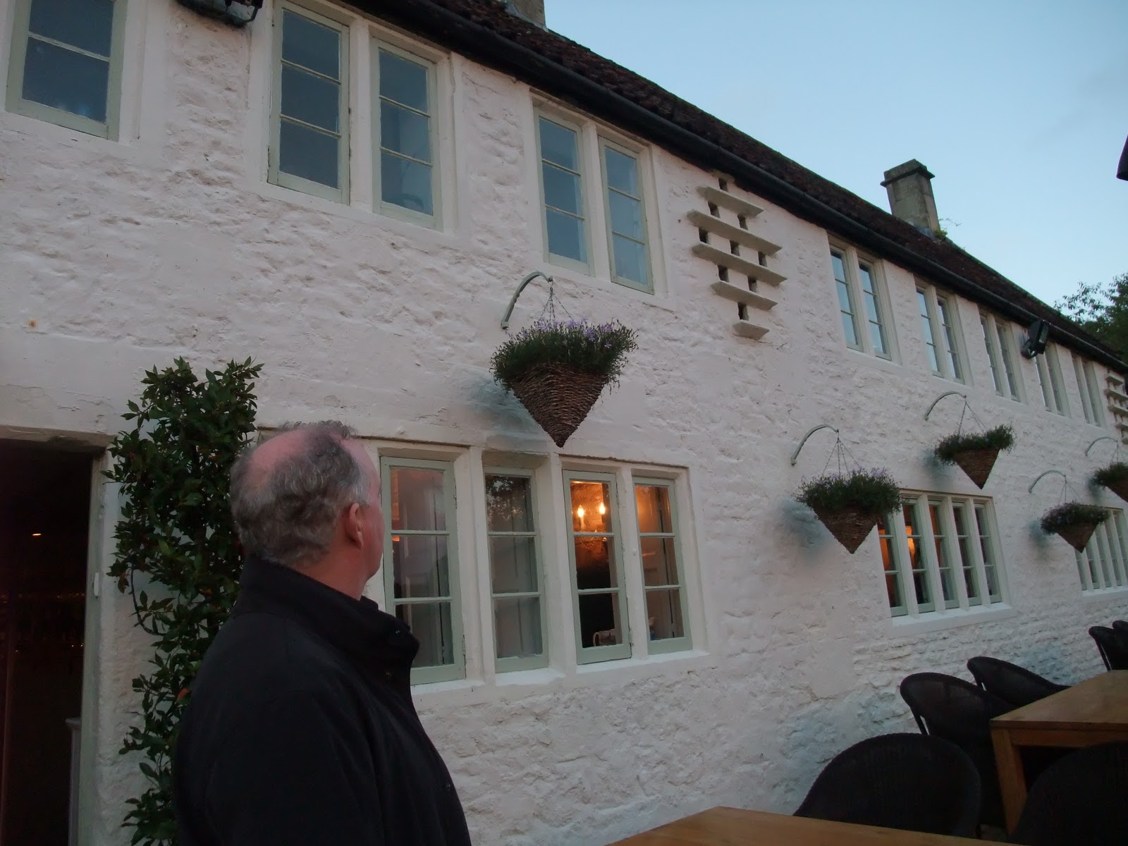 Diinner was at the Wheatsheaf in Combe Hay about 4.5 miles south of Bath. We started at the bar because the place is more a pub than a restaurant or at least that seems to be the approach of the owner who suggested we start at the bar before dinner. The building used to be an old farmhouse but has been a pub since the 16th century, according to the owner who was serving us at the bar.