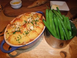 The restaurant features local and homemade produce. The breads were very good. I had a venison pie which was garnished with cobnuts, which were like small hazelnuts, and bobby beans, which were green beans.