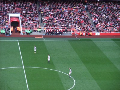Unfortunately, most of Arsenal’s stars were injured and sitting behind the team. Here’s my photo of Thomas Vermaelen, Cesc Fabregas and Theo Walcott sitting on the right of their team just behind the white bar. Not included among the injured in my photo was Robin Van Persie. So in the end, Arsenal lost.