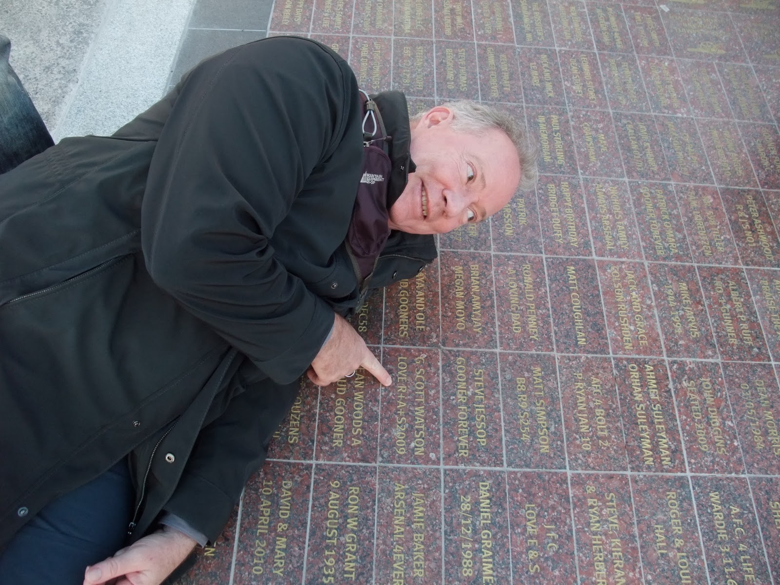 After the game, we looked for the brick that Robin, Allie and Sidney bought for Scott and had installed on the grounds of Arsenal stadium.