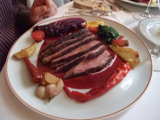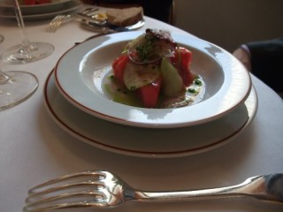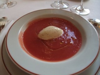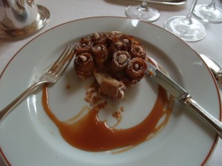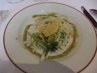 Accompanied by a Cote de Beaune Combe d’Eve Giboulot (white) and a Chateau Lagrange (red). I’m missing a photo of the cheese course. Lunch extended over four and a half hours.