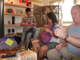 We then hauled gifts and food to Robin’s flat to prepare dinner.