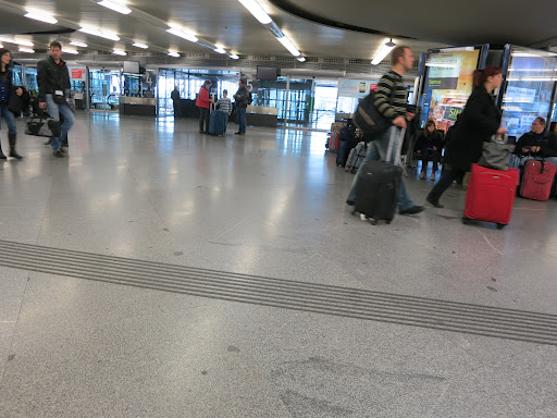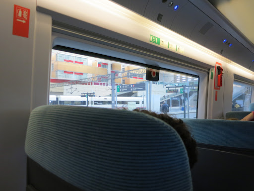 Had to get up early to finish packing and head to the train station. Took a taxi to Madrid Atocha station through very busy traffic. The taxi driver, a very talkative guy from Poland, explained where we had to go for departures. They have moving escalator like ramps made by ThyssenKrup — related to the Thyssen museum people.