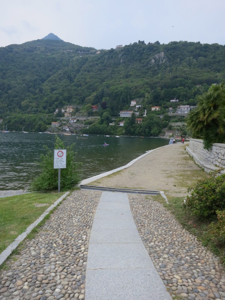 Lido. Lido means beach. Most of the lake villages don’t have a typical beach. They’re mostly rocks. Here at Cannero Riviera, the sandy beach has been created and the sand held in place by a wall protecting it from the water action. Almost no one is on the beach because the temperature is in the low 20s, which Italians think is cold.