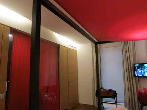 Our hotel is a bit funky in its design with the sink in the bedroom and a shower separated by a glass wall: