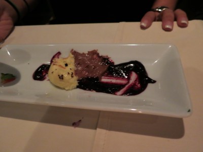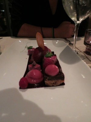 | post-dessert dessert chocolate mousses with raspberry puree |