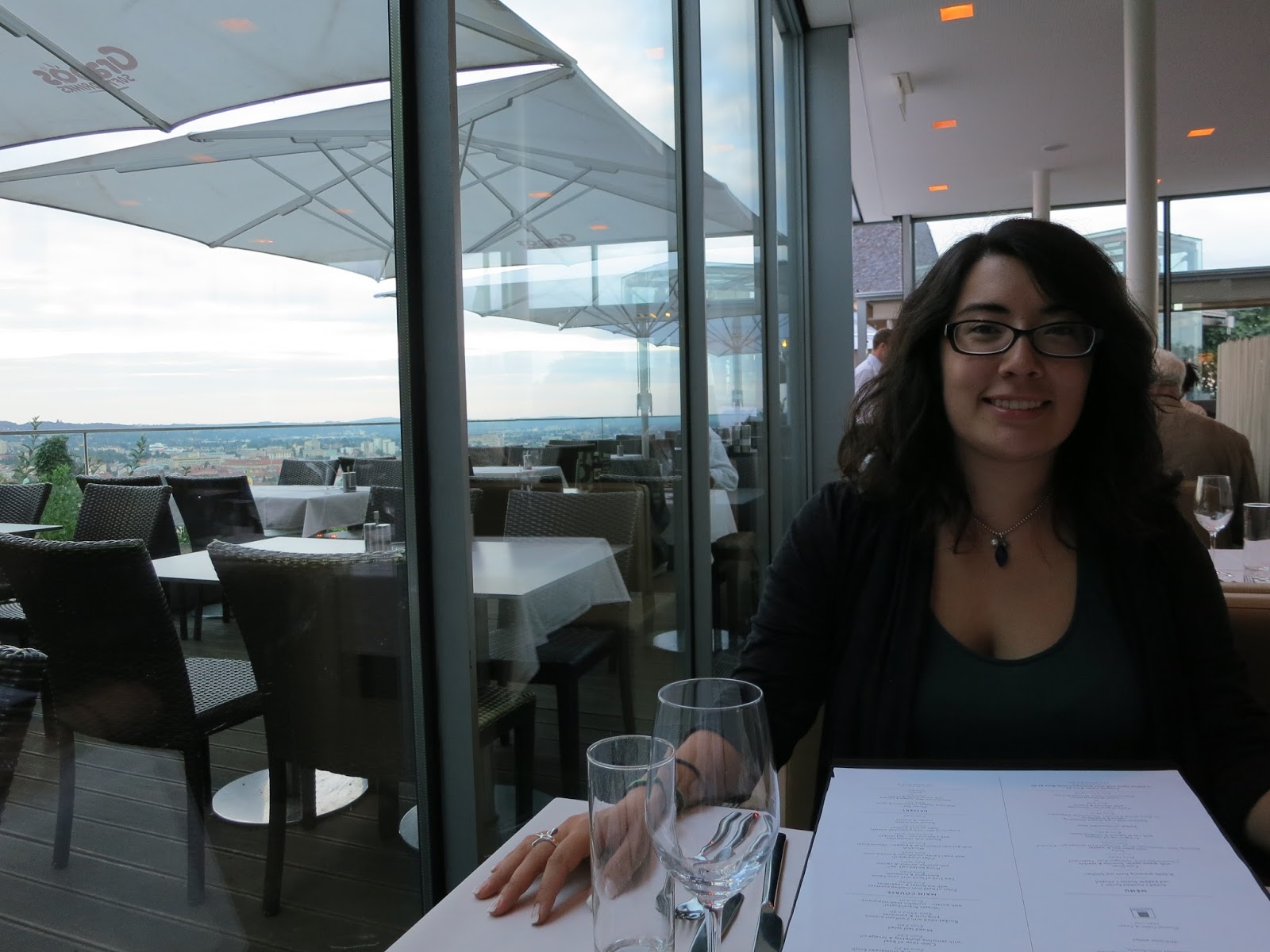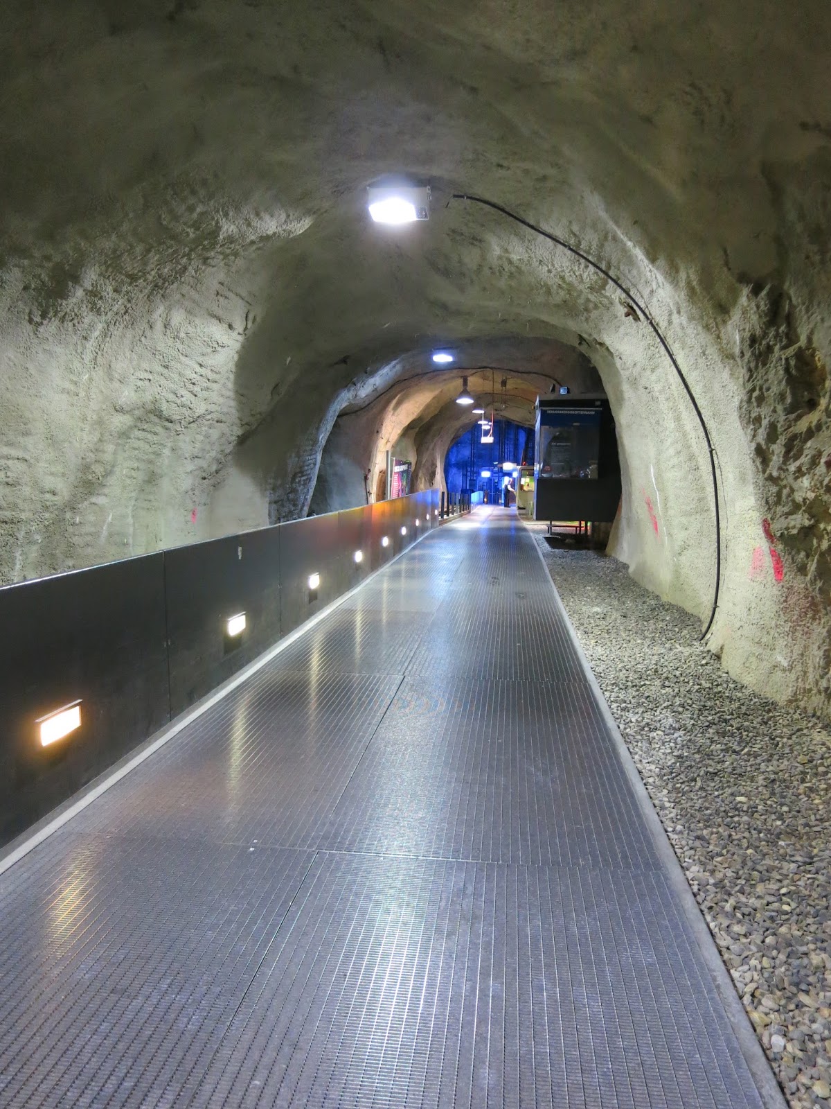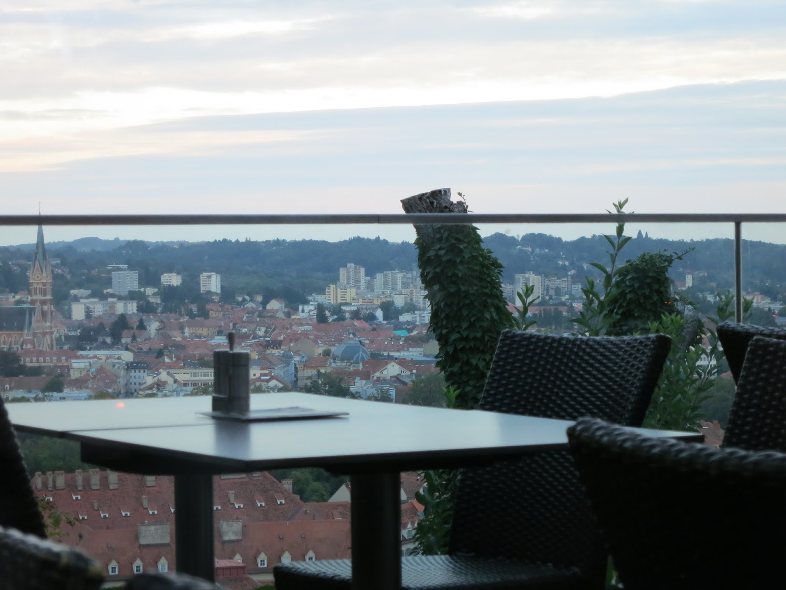 We had Sidney’s birthday dinner at a restaurant on top of Schlossberg hill. We took the lift which goes some 250 metres up through the middle of the rock. The above photo is looking up at the top of the elevator. Scott and Sidney looked down and thought it was rather scary.
