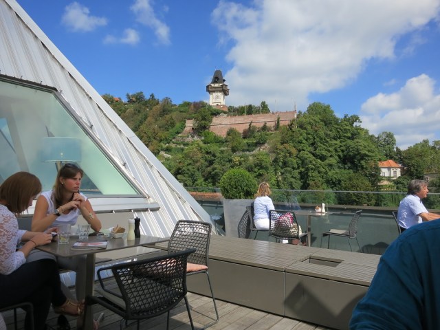 Sidney had a morning orientation to her intensive German for international students course but met us before noon. After checking out, we headed out for lunch to the K & O store, Kastner and Ohle (umlaut over the O), where there’s a restaurant on the top floor overlooking the city.